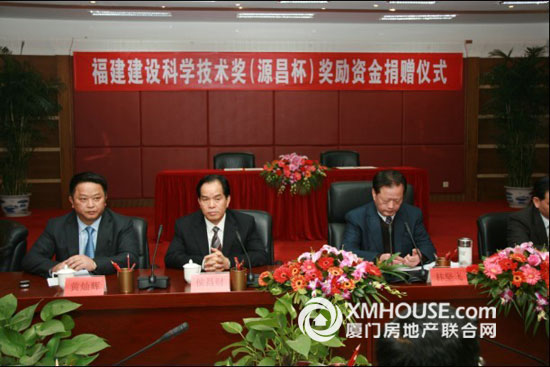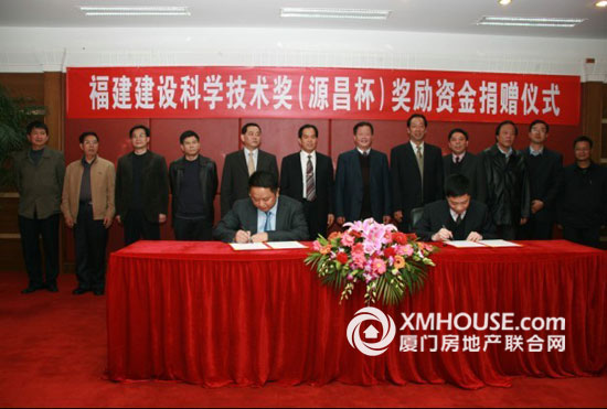 XMHOUSE 消息 近日,厦门市南安商会侯昌财会长代表源昌集团为福建“建设科学技术奖(源昌杯)”奖励资金捐资200万。福建省住房和城乡建设厅厅长林坚飞、副厅长翁玉耀、总工程师周武进等出席捐资仪式。