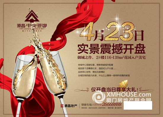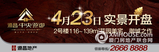 XMHOUSE 消息 源昌·中央领御御城之作,2#116-139㎡花园入户美宅将于4月23日正式开盘。